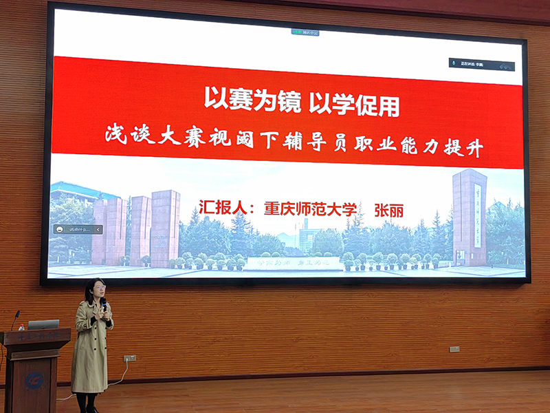 本网讯(文/图 学生处 熊佳)为进一步提高辅导员职业能力和专业素养,打造高质量、高水准的辅导员工作队伍,我校于3月10日下午,在第七教学楼807报告厅举办了“2023年辅导员素质能力大赛交流培训会”,学生处负责人、各二级学院党组织负责人以及全校辅导员80余人参会(双桥校区视频参训)。本次培训会嘉宾张丽是重庆师范大学教育科学学院专职辅导员,曾获重庆市第十届高校辅导员素质能力大赛本科院校组特等奖、获评全国高校辅导员素质能力提升骨干训练营 “ 优秀风采 ” 奖,有丰富的参赛经验、扎实的理论知识及实践育人功底。