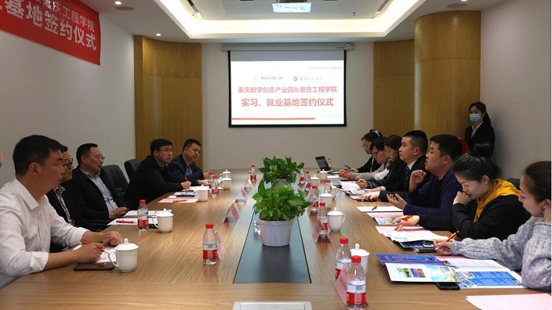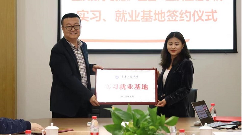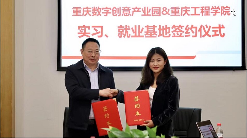 会上,谭明术书记与重庆数字创意产业园副总经理王小英签订了“重庆工程学院实习就业基地协议”。同时,园区副总经理王小英代表园区授予学校“人才培养基地”牌匾,副校长王建东代表学校授予重庆软件园 “实习就业基地”牌匾。