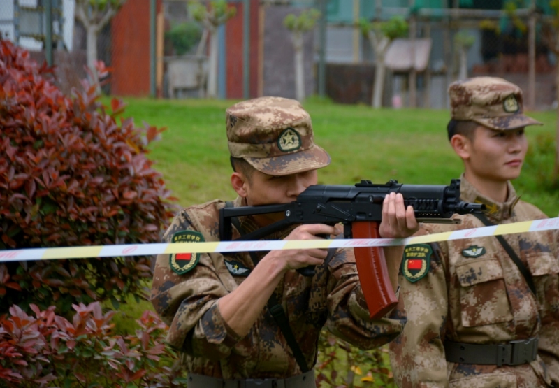 本网讯(文/图 党委武装部)4月5日,党委武装部利用清明假期,对学校国旗护卫队、军事社团、民兵排进行军事技能考核。