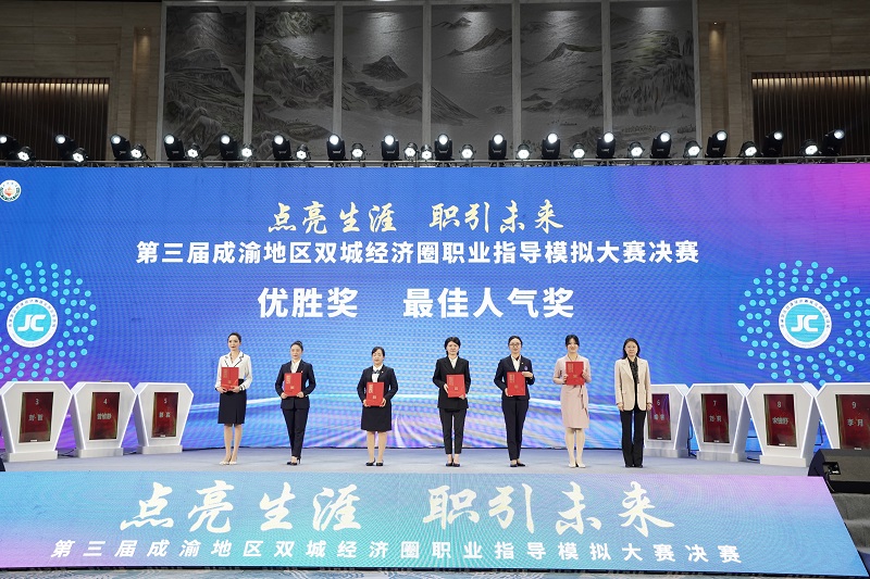 决赛分为风采展示、情景模拟、专家提问、擂台赛四个环节,选手们现场展示为高校毕业生、农民工、登记失业人员、退役军人等重点群体提供职业生涯规划与就业指导服务,比赛环环相扣,考验选手的临场应变能力。经过激烈的角逐,洪潜老师在决赛中荣获一等奖、最佳人气奖,并入选“川渝两地职业指导人才库”。