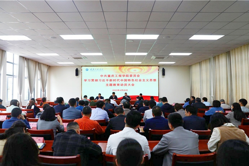 本网讯(文/组织部 文列焰 图/大学生记者团 高萍)为深入贯彻落实党中央及市委、市委教育工委关于开展学习贯彻习近平新时代中国特色社会主义思想主题教育的有关部署和要求,4月26日,学校召开学习贯彻习近平新时代中国特色社会主义思想主题教育动员大会,深入学习贯彻习近平总书记在主题教育工作会议上的重要讲话精神,认真落实市委教育工委市教委主题教育动员大会精神,动员部署重庆工程学院主题教育工作。学校党委书记、主题教育领导小组组长谭明术作动员部署,市委教育工委巡回指导二组组长冯波出席会议并讲话。学校党委副书记、常务副校长、主题教育领导小组副组长张业平主持会议。
