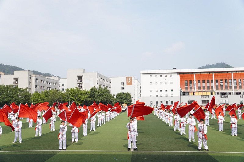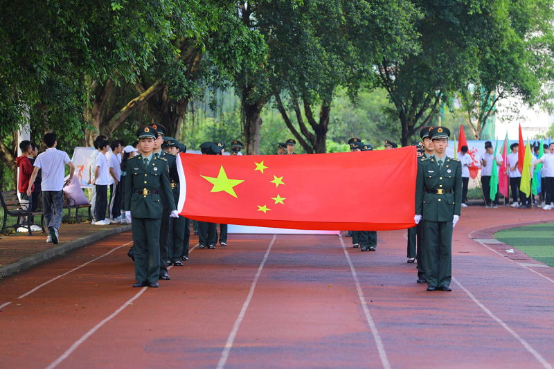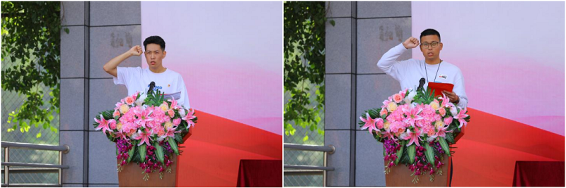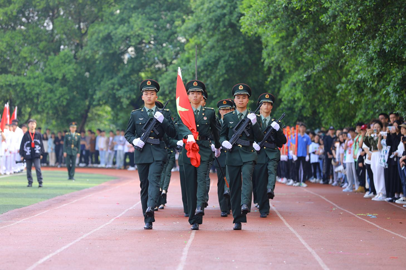 国旗护卫队手举五星红旗脚步铿锵,全体肃立,升国旗高唱国歌,与会学子的热情愈发高涨。随后,运动会代表和裁判员代表分别进行了宣誓。