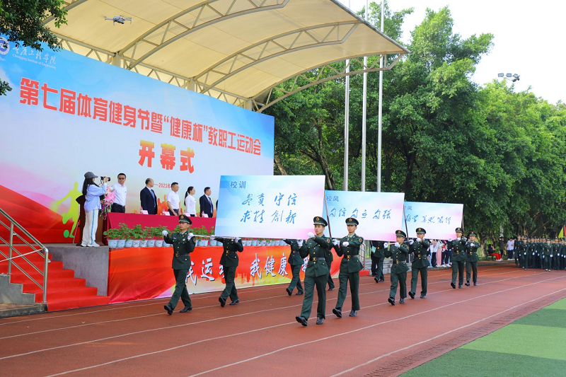 本网讯(文/大学生记者团 肖郁遥 图/大学生记者团)恰同学少年,风华正茂;飒爽英姿,青春激昂。4月27日,我校第七届体育健身节暨“健康杯”教职工运动会开幕式在南泉校区隆重启幕,党委书记谭明术,党委副书记、常务副校长张业平,副校长王琼花、王建东,各二级学院院长出席南泉校区开幕式,开幕仪式由王建东主持。