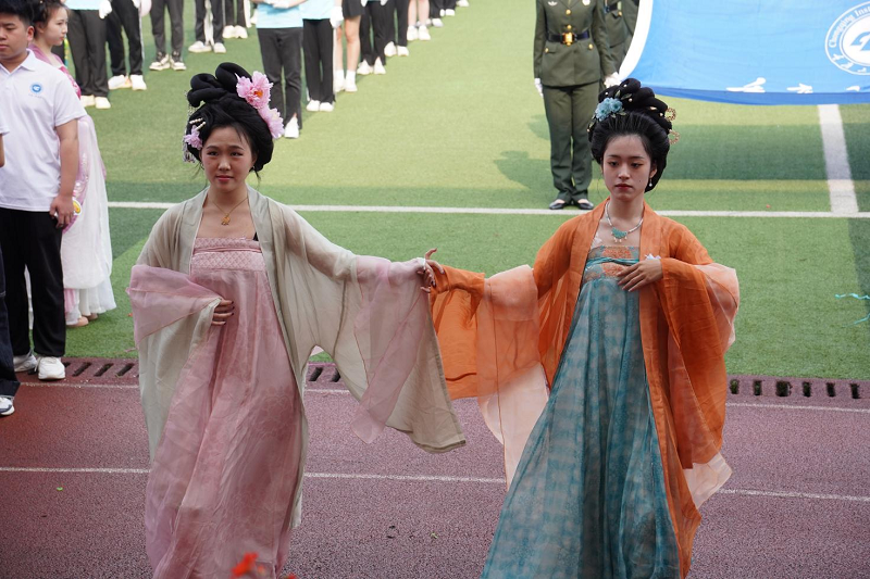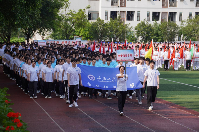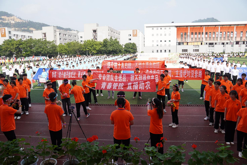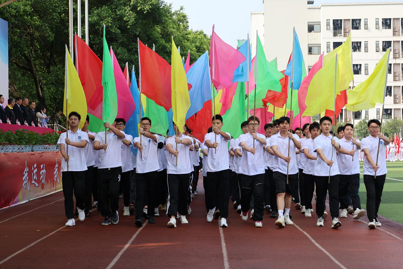 伴随着激昂的《运动员进行曲》,迎来了开幕式的第一项——各方队入场。国旗、校旗、彩旗和各学院方阵依次入场,同学们迈着有力的步伐,满怀激情,用他们灿烂的笑容点燃了四月的星火。首先踏着整齐的步伐走进会场的是国旗方阵,跟随其后的是校旗、运动会会旗、运动会会徽和校训校风方阵;紧接着,是由电子信息学院组成的彩旗方阵和数字艺术学院组成的花环方阵,舞旗队伍动作刚劲有力;学院方阵各显特色,直播助农演示趣味横生,汉服表演赢得掌声雷动……