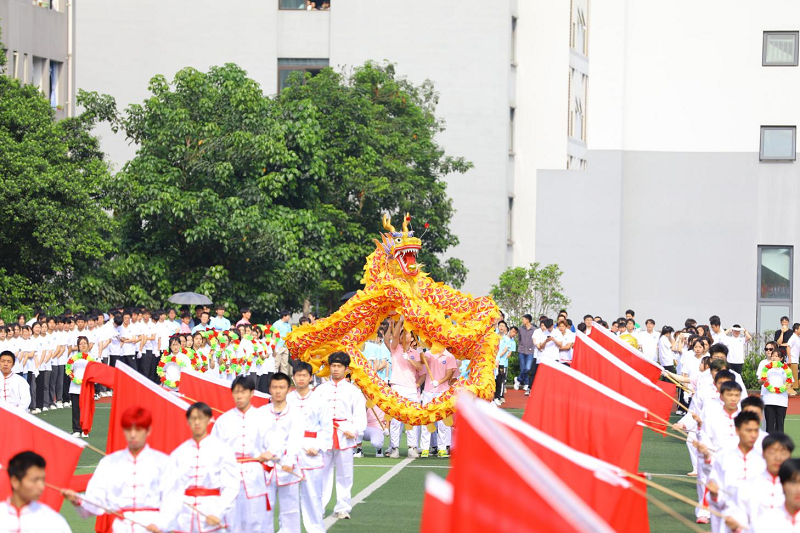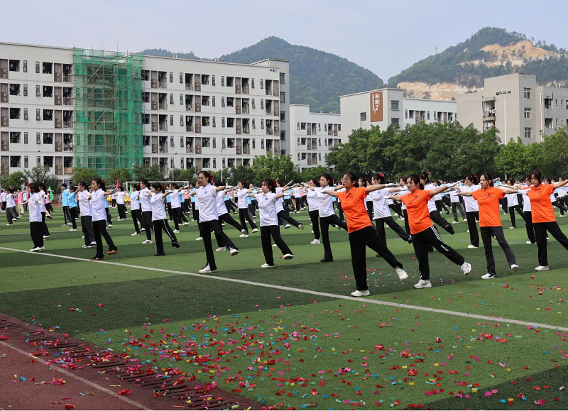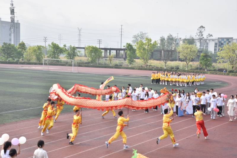 和风拂面,旌旗飞扬,接下来,由软件与人工智能学院带来《舞动青春》的团体表演,在动感的音乐中,红旗飘扬,巨龙舞动,青春洋溢的舞步为全校师生呈现了一场视觉盛宴;绿茵场上,参加《奋斗青春》广播体操比赛的同学们动作整齐划一、活力四射,展现了团队精神;最后由校舞蹈队和管理学院带来的舞蹈《律动青春》以整齐的队形,精彩的表演,焕发出朝气蓬勃的精神面貌。