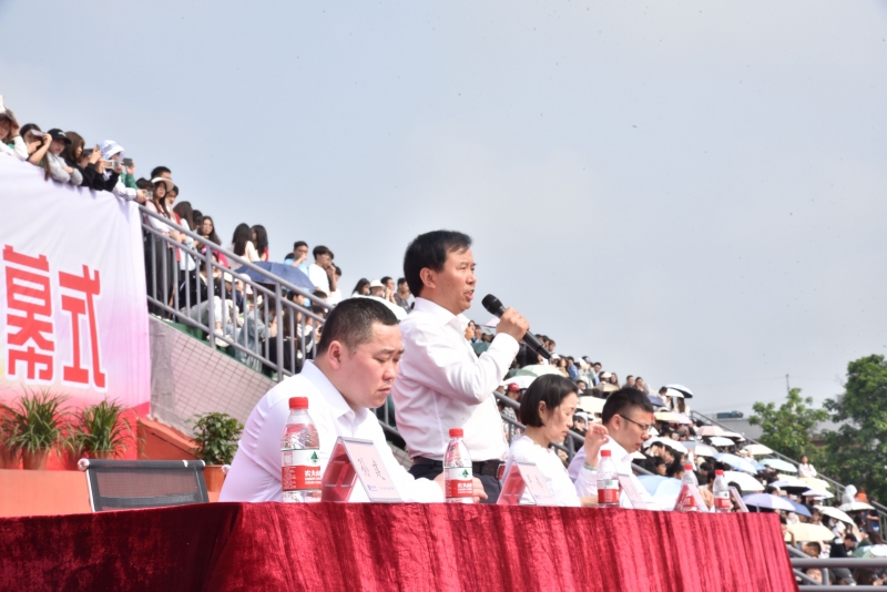 党委书记、体育工作委员会主任谭明术为第七届体育健身节致开幕词。他要求参赛人员坚持“友谊第一,比赛第二”的原则,发扬良好的体育道德风尚,在竞技中增加欢乐,在欢乐中增进友谊。
