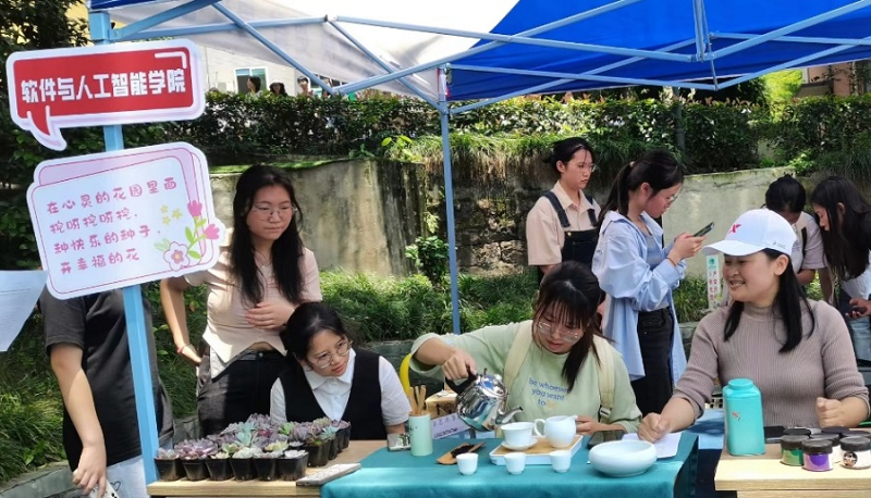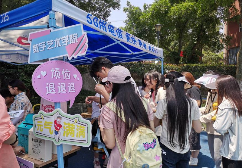 5月24日下午,两校区同步举办了5·25大学生心理健康文化节现场体验活动,现场活动有包括“画由心生”自画像绘画体验、“镶嵌探心”认知风格心理测验、“发泄乐园”心情舒缓体验、“爱的抱抱”温暖校园行动、“我心我秀”拍照打卡、“心情集市”手工艺品文创展览、“时光慢递”致一年后的自己、“重工笑容”摄影作品展览、“三有一约”宿舍心理之家成果展等。此外,二级学院也纷纷加入到了现场活动行列。数字艺术学院在现场设置了“漂流瓶”、“组词成句挑战”游戏、“再见吧,烦恼”等心理体验活动,得到了同学们的青睐;软件与人工智能学院则以“拥抱盛夏,感悟生命”绿植领养活动和现场茶艺体验与展示获得了同学们的关注。