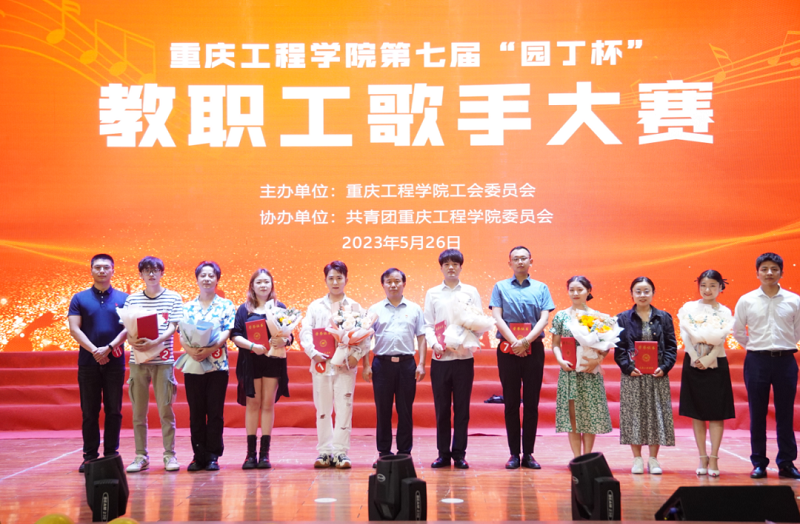 比赛在工会主席唐小勇为获得奖项的老师颁奖中拉下帷幕,孙洪禛老师以9.64的高分获得比赛一等奖,舒昊和杨双溢老师获得比赛二等奖,杨青、吴翰、刘子兮老师获得比赛三等奖。比赛虽已结束,但老师们嘹亮的歌声仍在耳边回响,本次比赛展现了重工教职工良好精神风貌,同学们在观演中也拉近了与老师们的距离。