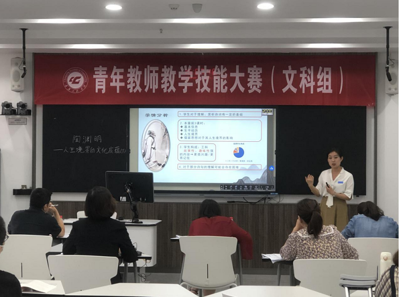 决赛分材料评阅、现场展示两个阶段。材料评阅阶段,评委对参赛教师的教学大纲、教学设计进行评分;现场展示阶段评委对参赛教师的教学设计说明、教学内容、教学组织、教学基本功等方面进行评分。最终,评比出理工组一等奖1名、二等奖2名、三等奖2名;文科组二等奖2名、三等奖2名。