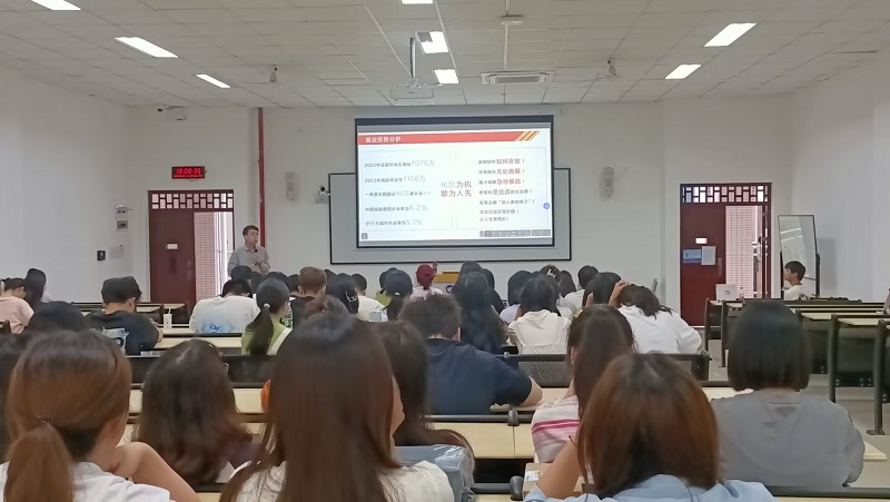 本网讯(文/图 就业指导中心 叶秋清)为进一步增强我校大学生的职业生涯规划和未来发展意识,了解公职就业项目的报考政策及备战策略,学校就业指导中心于6月7日于第六教学楼203教室,分学院开展了两场“助力公职就业梦想,科学规划职业生涯”专题讲座。本次讲座邀请了中公教育行测研究院院长、行测学科带头人于靖祺老师,全校300多名学生参与了此次线下活动。