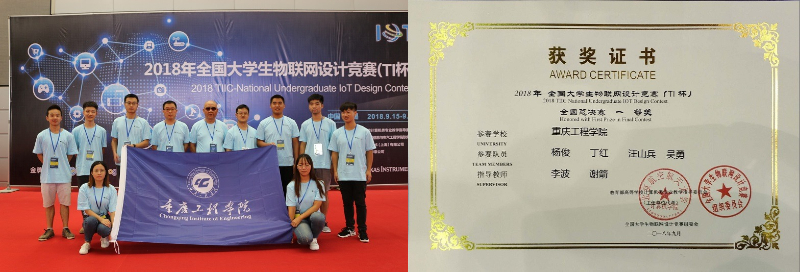 李波带领团队参加2018年全国大学生物联网设计竞赛及获奖证书