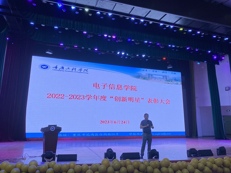 本网讯(文/图 电子信息学院 谭思宇)为进一步加强学院学风建设,激发广大学生的创新热情、增强创新意识、培养创新能力,电子信息学院于6月24日在学术报告厅举行“电子信息学院2022-2023学年度创新明星表彰大会”。学院全体院领导、2020、2021级全体辅导员及全体学生参加,大会由学院党总支书记谭思宇主持。
