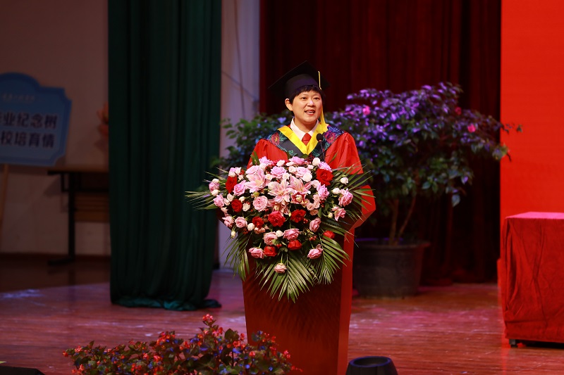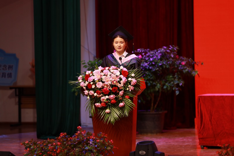 数字艺术学院姜桐玲同学代表全体毕业生发言,她回顾了在学校点点滴滴的奋斗时光,表达了对母校和老师们的衷心感谢,她表示,将继续弘扬重工精神,拿出实干加苦干的行动,做有理想、敢担当、能吃苦、肯奋斗的新时代好青年。