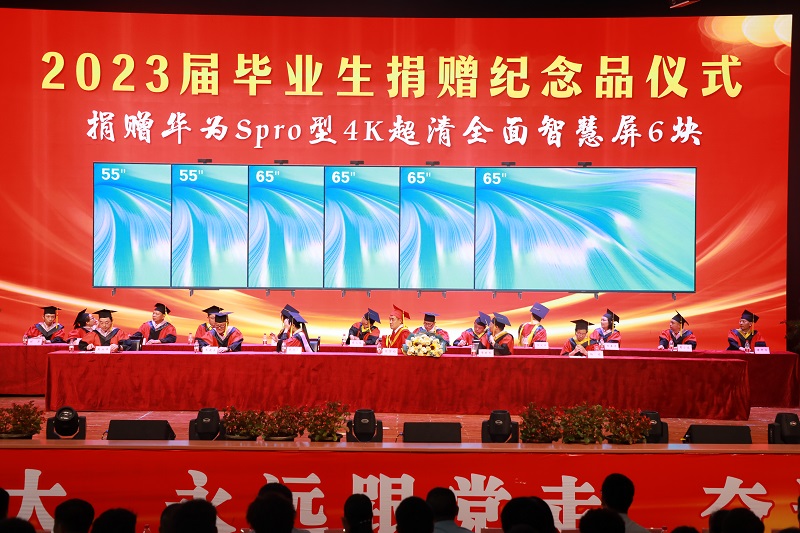 接着,毕业生代表向母校献礼,祝愿母校在数字化浪潮之下,以“信息技术+”为专业人才培养特色,早日建成特色鲜明的工程技术大学。