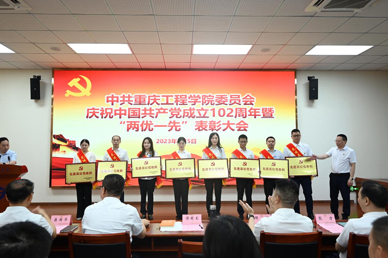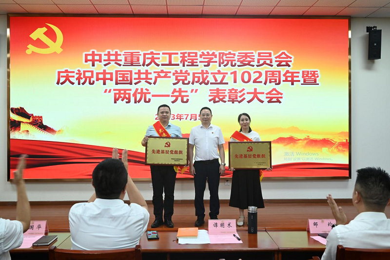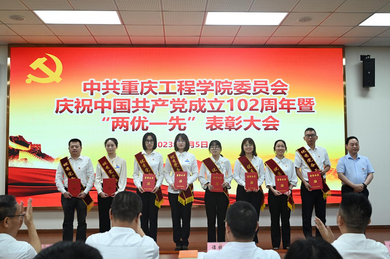 会议在庄严的国歌声中开始。首先举行了新党员入党宣誓、老党员重温入党誓词仪式。党委副书记、常务副校长张业平宣读了《中共重庆工程学院委员会关于表彰2023年度优秀共产党员、优秀党务工作者和先进基层党组织的通知》。学校领导谭明术、张业平、王建东等为获奖单位和个人代表颁发了奖牌和荣誉证书。