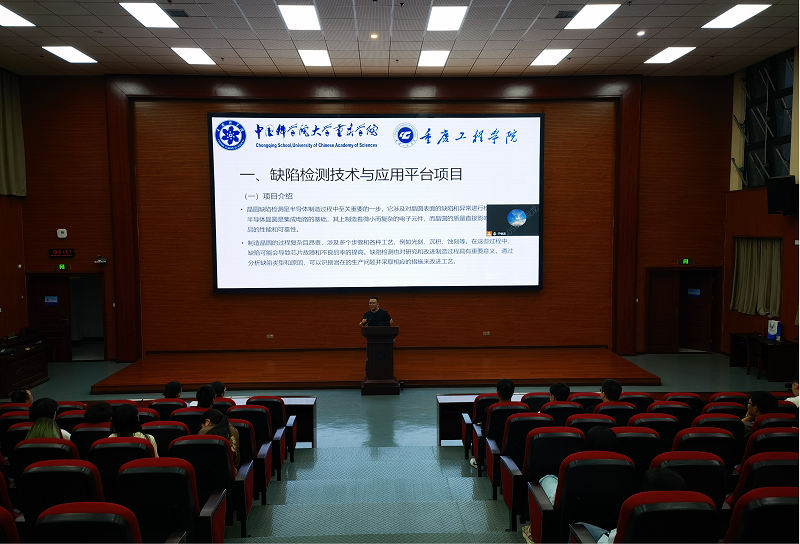 本网讯(文/图 教务处 校企合作办公室 宁俊龙)为进一步做好与中国科学院大学重庆学院校校联合人才培养工作,7月6日,学校在七教报告厅组织召开中科院第三届卓越工程师班宣讲会。宣讲会特别邀请中科院重庆学院项目组导师林远长博士、龚治岗博士、杨黎博士、陈睿博士等到校进行项目宣讲及答疑。会议由教务处(校企合作办公室)处长杨倩主持。
