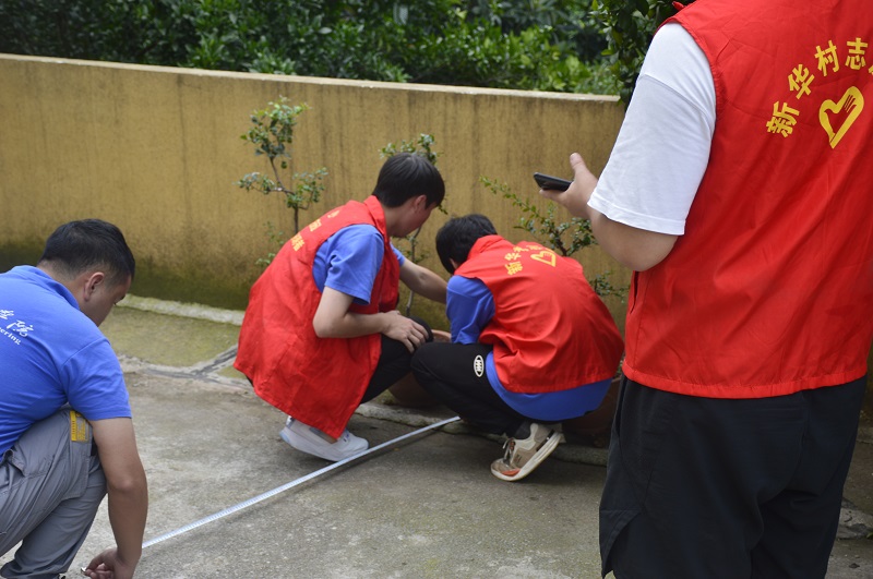 交流会结束后,新华村工作人员任家伟亲自带领团队前往农户家开展数据采集、环境勘察等工作。在经过几个小时的实地调研后,团队采集到需要的数据,并且为房屋画了基本草图,为后续的庭院设计提供了基础数据保证。下午,团队参观了飞来石,飞来石是当地对庭院设计非常有经验的父子打造的美丽庭院,激发了团队成员的创新思维。