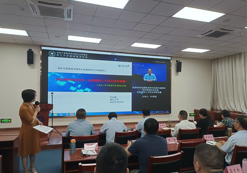 8月31日上午,博士生导师叶高翔以《高等教育发展新态势与高校内涵建设——深化高校综合改革, 全面提高人才自主培养质量》为题进行了专题培训,此次培训采用视频直播形式进行,叶教授对高校发展和内涵建设进行了深入解读,对创新型人才的培养提出了独到见解。叶教授曾担任浙江大学党委副书记、杭州师范大学校长、浙江科技学院校长。曾获全国师德先进个人、浙江省教学名师荣誉称号。培训环节由人事处处长明延艳主持。