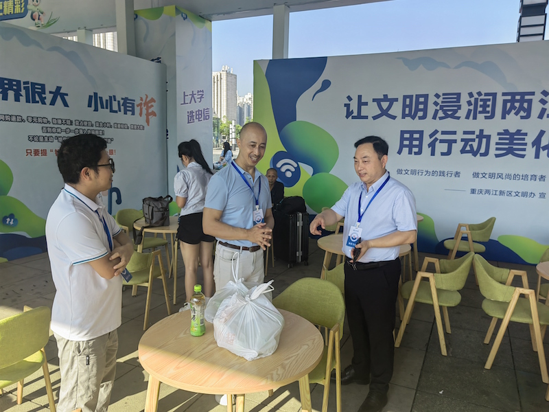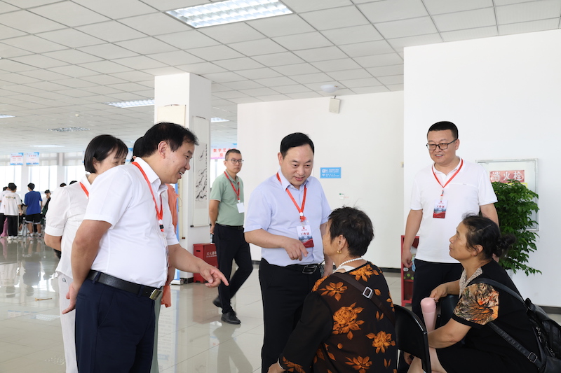 校领导一行还慰问了工作人员与志愿者们,详细询问了新生报到、学生住宿、迎新安排等工作进展情况,嘱咐做好学生服务及开学相关工作,并对辛勤忙碌的工作人员和志愿者们表示感谢。