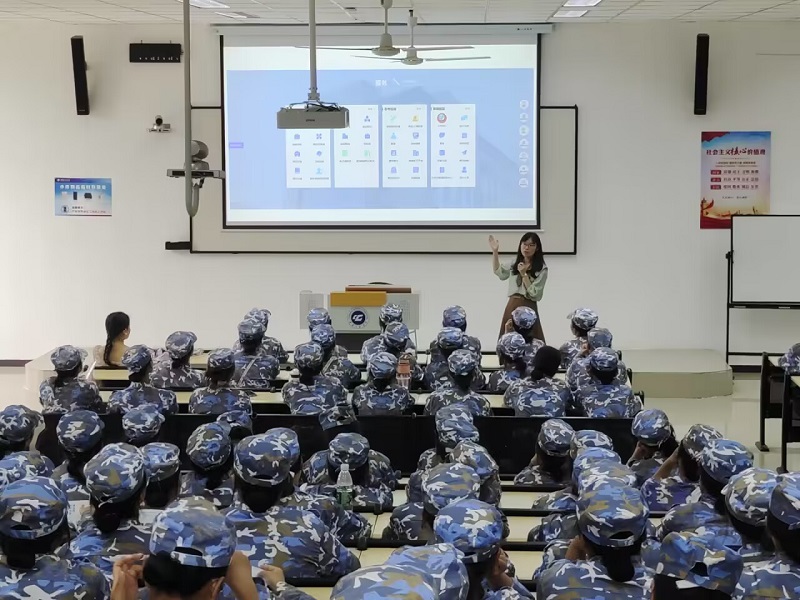 本次培训由技术咨询部王玉荣、阅读推广部唐时勇和图书馆二部张萍三位老师主讲,分三个会场,总计12批次,覆盖所有军训连队。同学们在双桥校区综合办、学生办的组织下,有序进入会场并入座,纪律良好。培训以馆藏资源概况、馆舍布局、开放时间及入馆须知、图书借阅规则、馆藏利用与信息服务、阅读推广等八个板块为主,向同学们细致介绍了图书馆相关制度规则及资源使用方法。