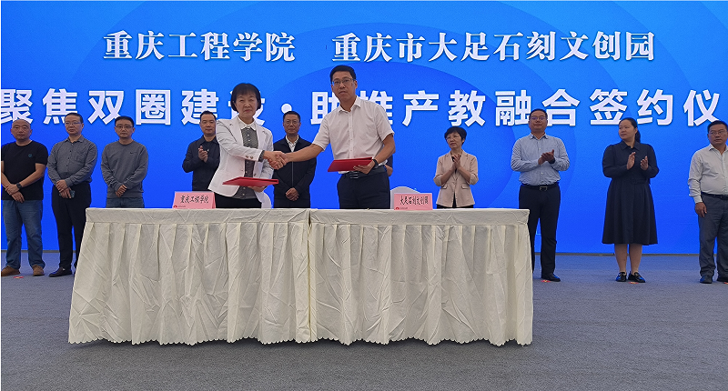 本网讯(文/图 数字艺术学院 弋玮玮)2023年9月23日上午,在重庆市大足区三驱镇帝师广场,杨桂副校长代表重庆工程学院与大足石刻文创园于进行了产教融合签约仪式,双方将在就业实习、创业孵化、创意作品转化等方面开展深入合作,这也拉开了聚焦双圈建设助推产教融合系列活动的序幕。