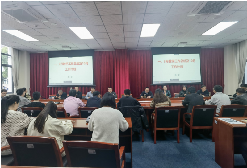 本网讯(文/图 教务处校企合作办公室 张兴) 10月13日,学校在行政楼第一会议室召开了2023年9月教学工作例会,副校长谭明术、王琼花、杨桂出席了会议。会议由教务处处长杨倩主持,相关部门负责人,质管办及教务处全体人员,二级学院院长、分管教学的副院长、教务科长参加了会议。