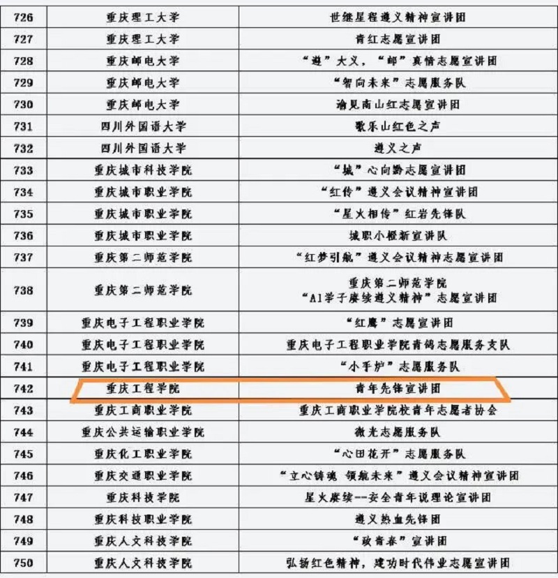 本网讯(文/图 校团委 张俊)为全面学习贯彻党的二十大精神,深入贯彻落实习近平总书记提出的“传承红色基因、讲好遵义故事”的重要要求,团中央青年志愿者行动指导中心、中共遵义市委、共青团贵州省委近日联合发布了《关于遴选2023年全国大学生遵义会议精神志愿宣讲团的公告》。活动得到了各高校志愿服务团队的广泛关注和积极参与。主办单位对所有材料进行了认真审阅,最终共有来自全国540所高校的1000支大学生志愿服务团队入选。我校“青年先锋宣讲团”(指导单位:管理学院 指导老师:荣菁菁、尚伟)成功入选2023全国大学生遵义会议精神志愿宣讲团。