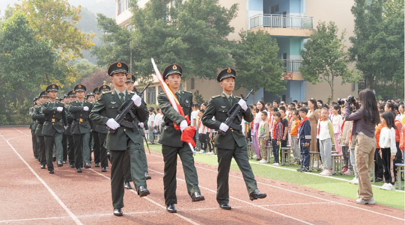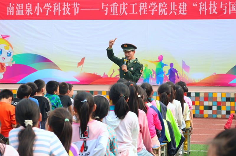 本网讯(文/武装部 朱文韬 图/大学生记者团 刘欣怡)10月18日,党委武装部组织校国旗护卫队、大学生记者团、军事爱好者协会深入南温泉小学共同开展“科技与国防”主题活动。