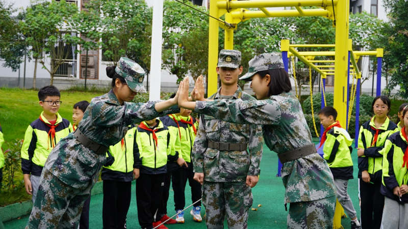 接下来在训练场上,国旗护卫队队员们不仅向小学生们展示了专业的军事技能,还与他们进行了互动交流。国护队员们用嘹亮的口号声、整齐划一的步伐和标准规范的动作,赢得了小学生们的阵阵掌声和赞叹声。