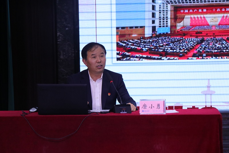 开班仪式结束后,唐小勇开讲了培训班第一课。他以“走好中国式现代化”为题,带领同学们学习了中国式现代化的中国特色、中国式现代化的本质要求和中国式现代化的重要原则,着重讲解了中国式现代化的特殊性与先进性,要求同学们努力学习,用科学知识武装头脑,树立正确的入党动机,发自内心的听党话、跟党走,以更强的政治素质、更高的道德追求、更好的学业表现、更全的综合素养、更实的工作作风、更优的进取精神,当好一名新时代的卓越学生骨干,为实现中华民族伟大复兴的中国梦和学校的高质量创新发展贡献自己的一份力量。