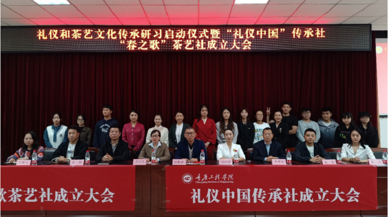 宣传部负责人赵鹏涛,马克思主义学院副院长王巧玲,校团委书记黄涛,马克思主义学院院长助理卢颖,中华优秀传统文化与核心价值观研究中心负责人岳精柱,特邀嘉宾全国总工会·礼仪中国·重庆站发起人、重庆市礼仪文化研究会副会长兼秘书长刘丽媛,重庆切尔思职业学校校长、国家一级茶艺师、国家茶艺技能大赛裁判员、重庆旅管业协会习茶产教融合分会会长王楷文出席会议。社团指导老师、社团学生负责人及社员,共计200余人参加会议。