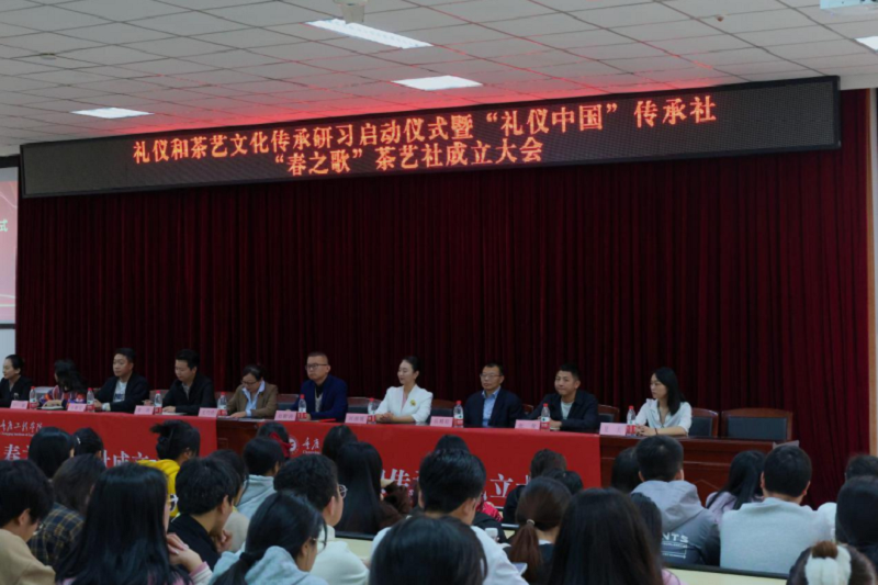 本网讯(文/图 党委宣传部 赵鹏涛)为深入学习和传承中华优秀传统文化,提高学生对中国优秀传统文化的认同感和自豪感,11月1日下午,礼仪和茶艺文化传承研习启动仪式暨“礼仪中国”传承社“春之歌”茶艺社讲座在第六教学楼阶梯报告厅举行。活动由马克思主义学院、科技处、党委宣传部、共青团委主办,中华优秀传统文化与核心价值观研究中心承办。