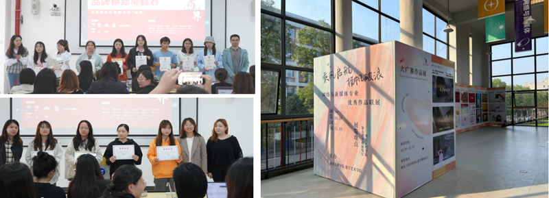 工作室老师为一专一赛、第15届大广赛等级奖获奖同学颁奖(左)