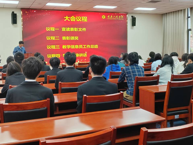 副校长谭明术,教学质量管理办公室主任赵钰,教学督导李晓楠,二级学院学生教学信息管理员、二级学院优秀学生教学信息员和学生教学信息员代表参加了此次会议。会议由赵钰主持。此次会议分为宣读表彰文件、表彰颁奖、教学信息员工作总结、学校领导讲话四项议程。