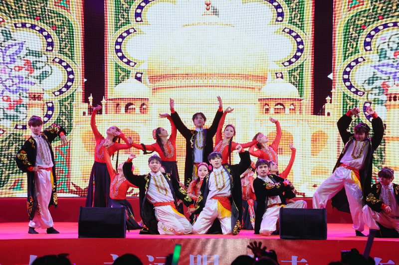 “青春正当时,不予负流年”,迎新晚会从青春主题篇章正式开始。奋发向上的重工学子上演了一场动感十足的啦啦操表演《律动青春》,充满活力的舞姿让青春从重工起航;全校十佳歌手齐上场,共同唱响青春,齐唱《十七年》,让青春在重工焕发;由第九届文化艺术节校园舞蹈大赛决赛选手带来的舞蹈串烧《给力青春》,让青春在重工燃烧;第四届园丁杯教职工歌手大赛一等奖和二等奖获得者孙洪禛和杨双溢老师共同为大家带来了精彩的歌曲弹唱《珊瑚海》,让青春能像珊瑚海一样充满诗情画意;最后以充满民族色彩的舞蹈《掀起你的盖头来》,在欢快与喜悦的气氛中,结束了青春环节表演。