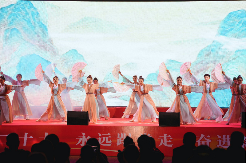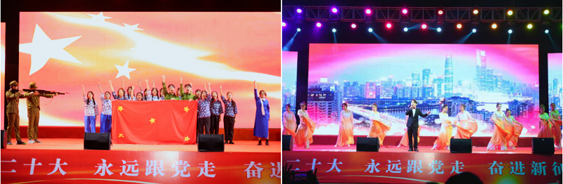 “学习二十大、永远跟党走、奋进新征程”,晚会进入迎新晚会第三篇章:心向党,首先,大学生舞蹈团为大家带来了精彩的舞蹈《鼓舞心弦》。双桥经济开发区文化馆蒋萍老师带来川剧《人间好》,让现场的师生近距离享受到了高雅艺术的熏陶;由建筑工程学院分团委带来的歌剧《江姐》选段《绣红旗》,让同学们深切体会到共产党的“不忘初心,砥砺前行”;最后,晚会在由双桥校区团委书记陈军老师带来的歌伴舞《我们的新时代》中圆满落下帷幕。