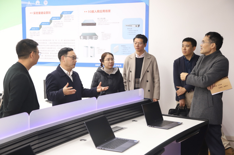 张业平一行参观考察了张华大师工作室、信息工程学院、艺术学院等场所。