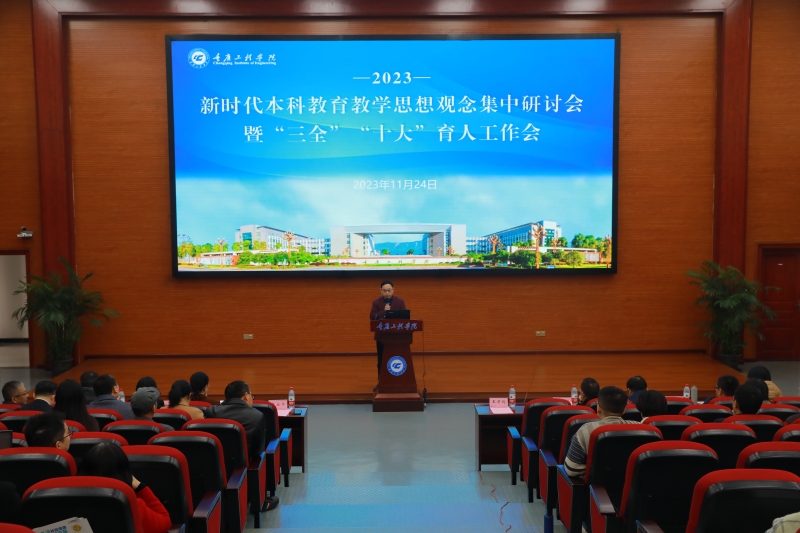 本网讯(文/党委宣传部 图/大学生记者团 廖颖姗、向洪滔)为落实教育部本科教育工作会议精神和学校《重庆工程学院本科教学工作合格评估整改方案》通知要求,进一步推进学校“三全”“十大”育人工作走深走实,切实提高我校人才培养质量,11月24日,我校于南泉校区七教学楼报告厅召开新时代本科教育教学思想观念集中研讨会暨“三全”“十大”育人工作会。会议由党委副书记、常务副校长张业平主持。