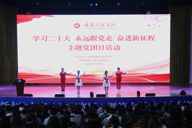 本网讯 (文/图 校团委 张俊)为筑牢青年理想信念根基,团结带领广大青年坚定信念跟党走,充分展现新时代青年朝气蓬勃、奋发向上的精神面貌,切实增强青年的使命感与责任感。11月22日,团学党支部、校团委联合组织开展的“学习二十大、永远跟党走、奋进新征程”主题党日活动暨特色社团成果汇报会在南泉校区学术报告厅举行,学生党员、共青团员、社团骨干代表1000余人共同参与。