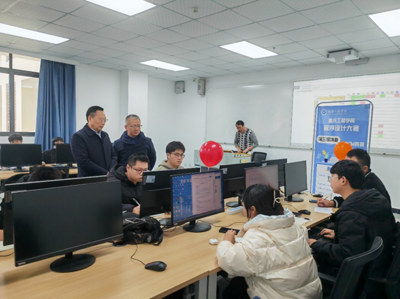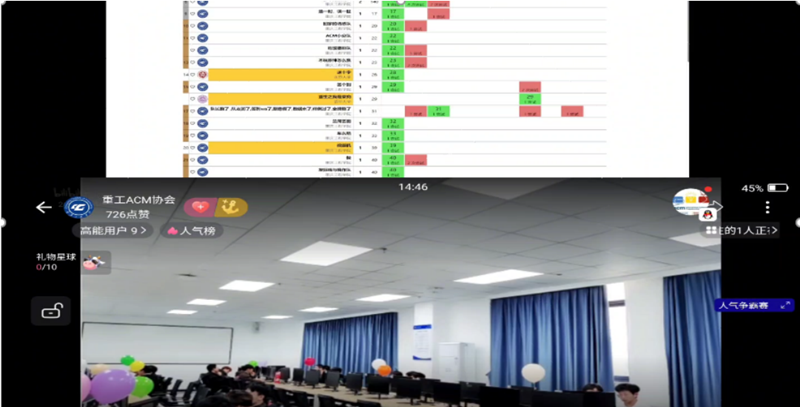为确保比赛的公正性和前沿性,大赛组委会特邀请了重庆大学ACM集训队提供高质量命题,邀请了重庆理工大学赛队前来切磋。本次比赛首次采用国际大学生程序设计竞赛平台domjudge作为比赛平台,为比赛增色不少,也体现了承办单位软件学院对教学工具不断创新的典范。同时,比赛还仿照ACM-ICPC的氛围,给过题的队伍发放气球,为比赛注入更多的活力,使整个比赛更具观赏性。比赛创造性的将4个决赛赛场采用B站实时直播,将比赛的激情传递给更多人,向外界充分展示重工学子“勤学、善思、笃行”的良好学风。