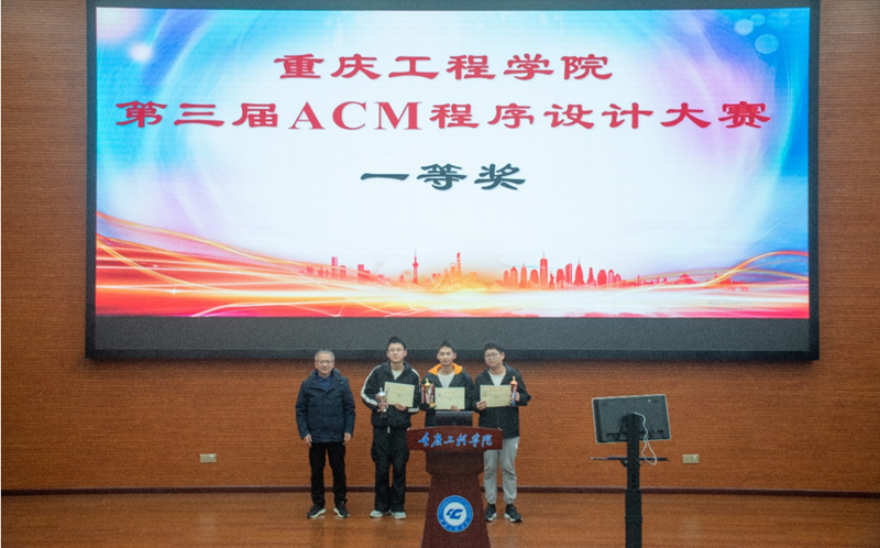 本网讯(文/图 软件学院 陈彬)11月22日下午,重庆工程学院第三届ACM程序设计大赛决赛圆满落幕。120名选手从11月15日初赛396名学子中晋级参赛,最终产生一等奖3项,二等奖5项,三等奖10项及优秀奖17项。副校长谭明术,校长助理周龙福亲临比赛现场,软件学院党总支书记刘子菱、副院长唐浩坤参加颁发仪式。