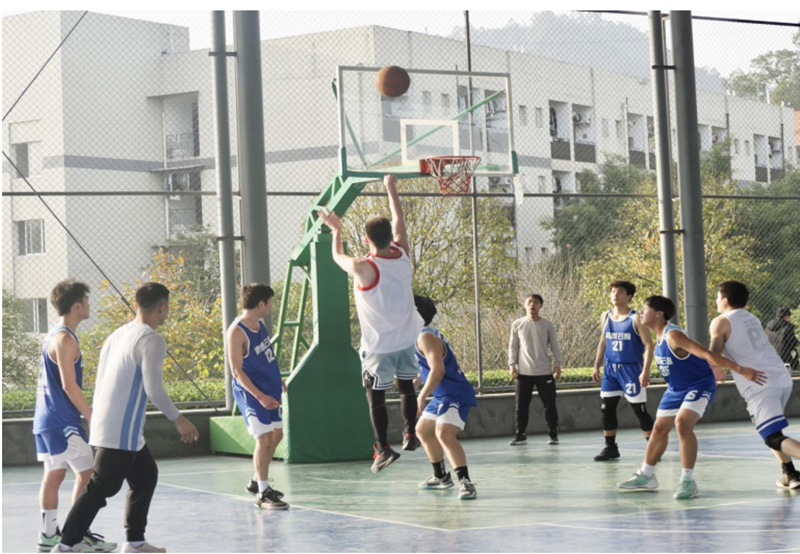 比赛中,由大数据与人工智能学院12名学生篮球队成员组成的“大数据学院队”与10名政企篮球爱好者组成的“政企联队”展开激烈角逐,参赛人员热情高涨,现场气氛热烈。双方队伍密切配合、团结一致、顽强拼搏,展现出高超的竞技水平和良好的精神风貌。观众热情高涨,不时为场上球员的精彩表现鼓掌助威。