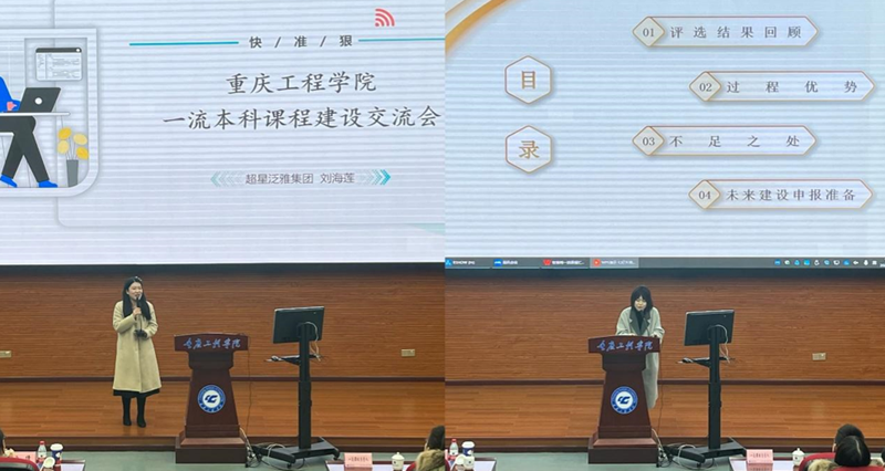 紧接着,超星课程顾问总监刘海莲,智慧树资深课程顾问李娟分别进行了重庆市一流课程打磨经验分享,并就即将申报的第三批国家一流本科课程评审指标进行了重要阐述,后期将致力于协助每位课程负责人解决申报过程中的重难点。