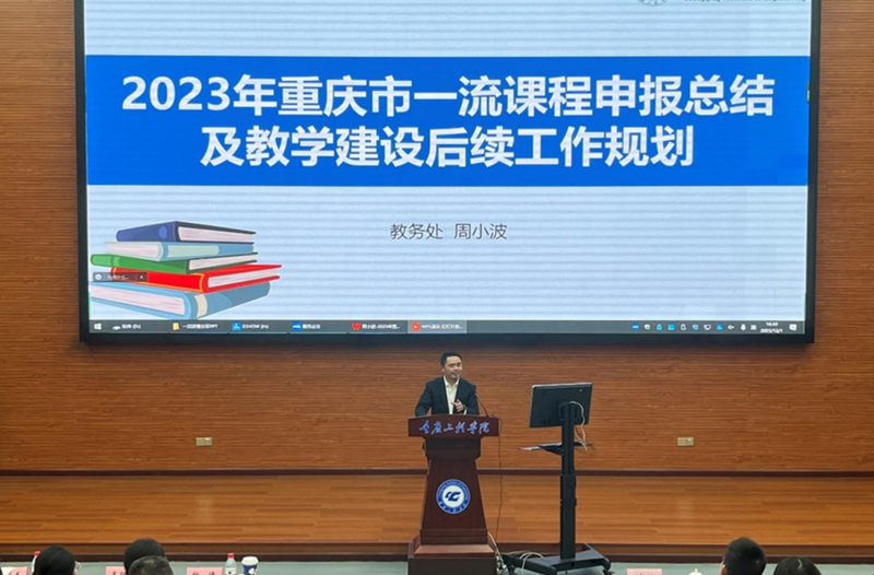 随后,教务处副处长周小波对2023年重庆市一流课程申报进行总结,用数据呈现了我校今年在申报成功率上有大幅提升、认定类型有所突破。通过本次申报,形成了市级及以上项目申报的“孵化-培育-打磨”工作模式。同时,还对后续教学建设工作思路和主要举措进行陈述,表示教学建设将聚焦学校有限资源,抓显性成果,更抓使用效果,并将与教发中心联动,提升大家的教学研究能力,持续推动我校教育教学改革。