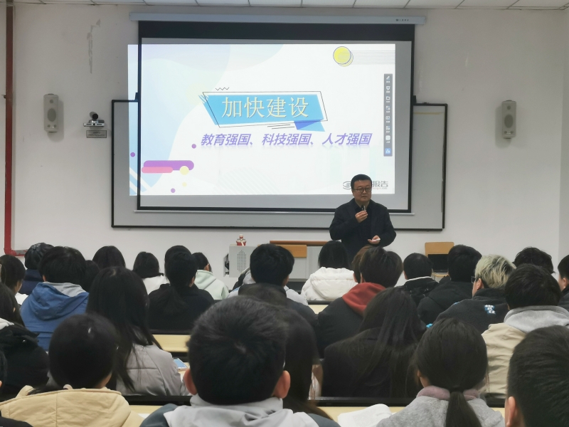 12月4日,根据学校“形势与政策”课程教学安排,副校长王建东深入思政课堂,以“加快建设教育强国、科技强国、人才强国”为题,为21软工10、11班、21信安1、2班的同学们带来了一堂理论深刻、视野开阔、内容丰富的“形势与政策”课。