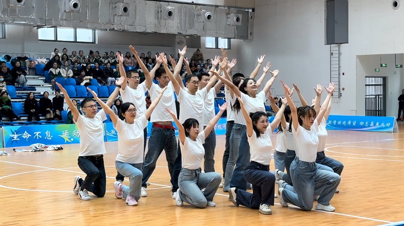 12月8日上午,老师们组成创意运动方队参加了运动会开幕式,他们穿着整洁干净的统一服装、迈着坚定一致的步伐,脸上洋溢着青春自信的笑容,每个人都精神饱满、富有朝气。随后,在观众的喝彩声中,老师们闪亮登场参加了教职工校园集体舞比赛。他们跟着节拍舞动身体,时而铿锵有力,时而脚步轻缓,最终获得了教职工集体舞高校组第二名的佳绩。