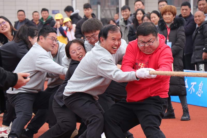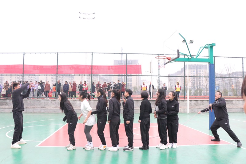 12月9日至10日,老师们先后参加了“一分钟教师集体跳绳”“定位投篮”“双人跳绳”“大丰收”“拔河比赛”“50m 迎面接力跑”“三分钟教师8字跑跳长绳”“毛毛虫游戏”等项目。赛场上,参赛的老师们斗志昂扬,奋勇争先,场下观战的老师出谋划策,加油助威,每位老师的脸上都写满了兴奋和喜悦,老师们用全身心的投入诠释着拼搏精神和重工精神。