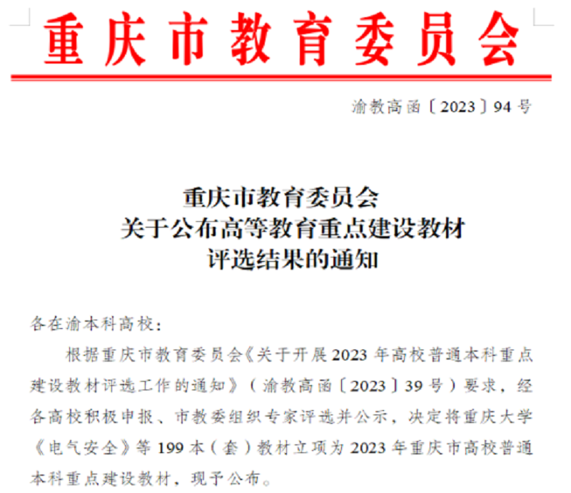 教材建设是育人育才的重要依托,是高等教育内涵式发展的重要抓手,是一项体现学校人才培养理念,展示学术和教学研究成果的标志性工作,在提高人才培养质量中起着基础性作用。近年来,学校不断加强教材建设力度,鼓励教师积极参与教材建设与研究,不断提高我校教材建设质量。此次入选重庆市高校普通本科重点建设教材是对我校教材建设的充分肯定。