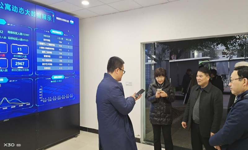 本网讯(文/图 教务处 袁敏)12月28日,重庆市教委学生处副处长严平率队对我校学生管理工作进行了检查督导。学校党委副书记、常务副校长张业平,副校长谭明术、王建东陪同检查督导并汇报了相关工作推进情况,学校教务处、学生处、招生就业处等有关负责人参加。