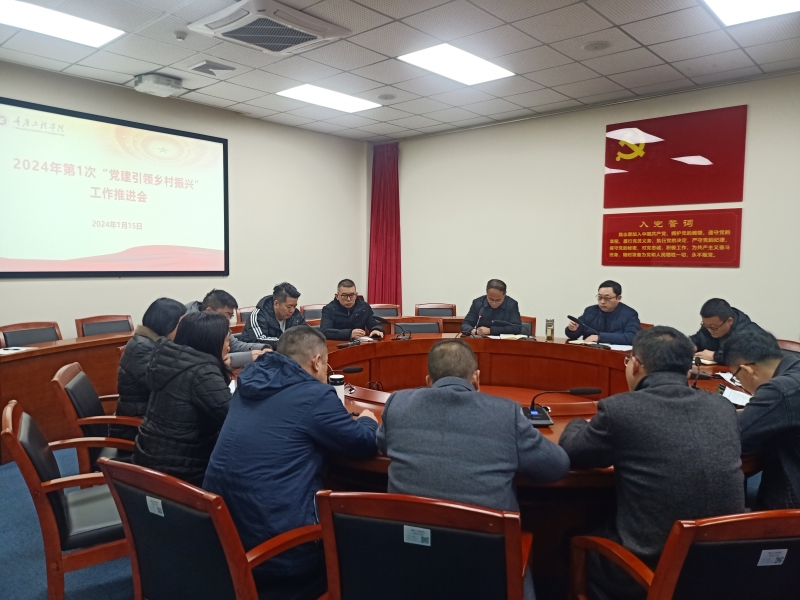 本网讯(文/图 组织部 文列焰)1月15日,学校在行政楼107会议室召开2024年第1次“党建引领乡村振兴”工作推进会。党委副书记、常务副校长张业平,副校长王建东,党委组织部、宣传部、学生工作部、校工会、校团委、素质教育中心及各专业学院党组织负责人参加会议。会议由党委组织部部长蒋国华主持。
